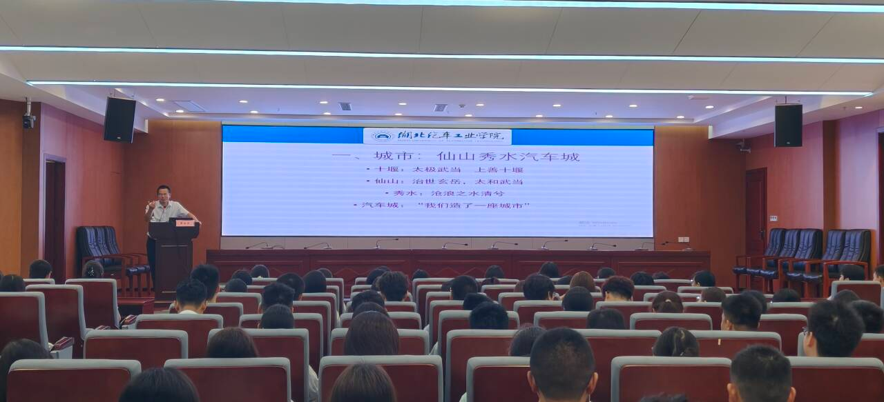 黄永昌教授以十堰市的发展历史为切入点,从“仙山秀水汽车城”三个角度向大家介绍了十堰。武当山蕴含着深厚的文化底蕴,丹江水描绘出十堰的灵动,汽车城见证了老一辈拓荒者艰苦创业的自豪。黄院长称十堰这座城市的灵魂与基因血脉值得我们传承。