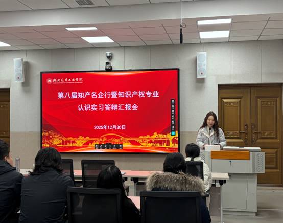 本次答辩会在总结方式上实现创新突破。活动首次采用视频全景记录的方式,通过精心制作的总结视频,生动再现了学生们深入十堰市经济开发区、郧阳区、郧西县二十家企业的实践历程。视频不仅记录了同学们在高端制造、数字科技、现代农业等前沿领域的调研足迹,更系统展现了他们对知识产权创造、管理、保护、运用及服务等专业议题的思考探索。这种影像化的总结方式,使认识实习成果展示更加直观立体,创新了实践教学的成果呈现模式。