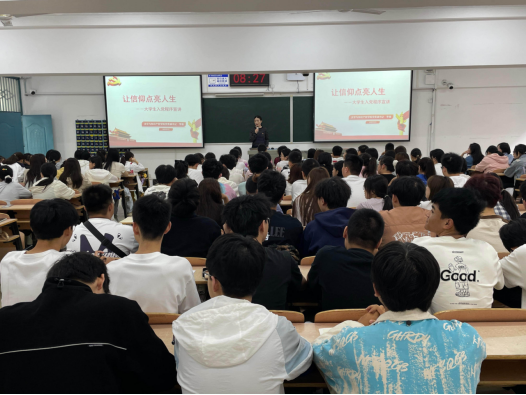 当天,李童以“信仰点亮人生”为主题,围绕入党流程为25级新生展开了详细且深入地讲解,让大家对入党流程有了全面、准确地认识。此外,她还特别强调,即将到来的军训是磨炼意志、培养纪律意识的重要契机,大学生更要严守纪律,让青春在纪律的框架下绽放光彩。